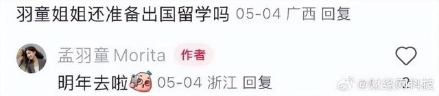 此外,孟羽童还在评论中表示明年将去留学。